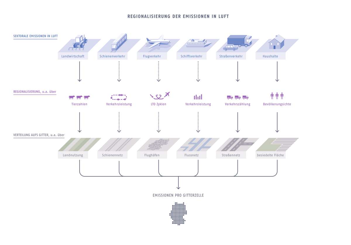 Messungen von unzähligen kleinen Einzelquellen, wie Haushalte & Verkehr dienen als Eingangsdaten.